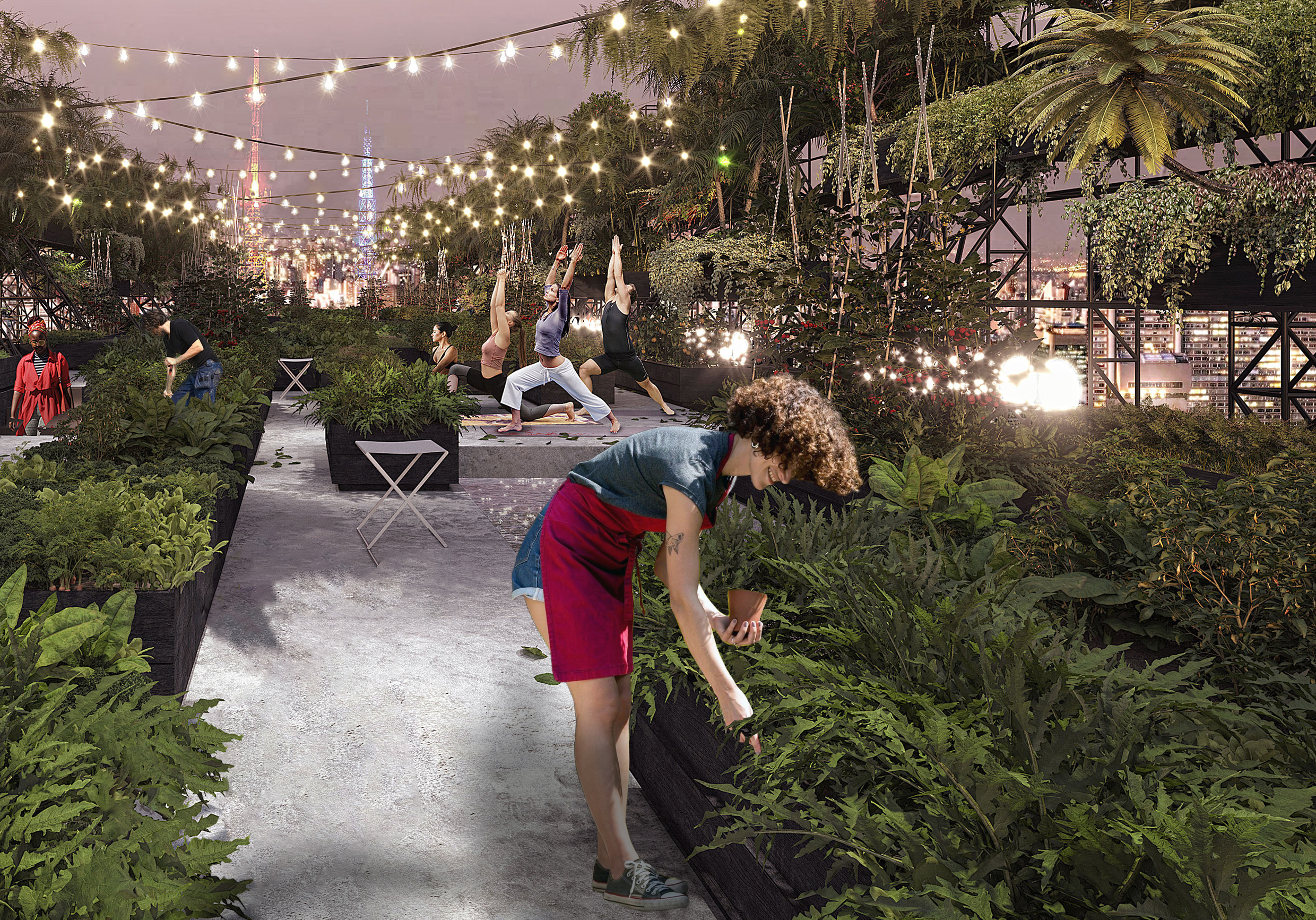 Meditation Farm lädt Sie zu einer kontemplativen Erfahrung in der städtischen Natur ein. Mit dem Selbstanbau von Nutzpflanzen des täglichen Gebrauchs kommen die Nutzerinnen mit nachhaltiger Landwirtschaft und bewusstem Konsum in Berührung. Das Projekt schlägt vor, die ungenutzte Stahlkonstruktion der Uhr- und Temperaturanzeige auf dem Dach des Conjunto Nacional in São Paulo in einen städtischen Garten umzunutzen. Der Garten ist für die Öffentlichkeit zugänglich und dient als Katalysator für die Entwicklung der lokalen Gemeinschaft.